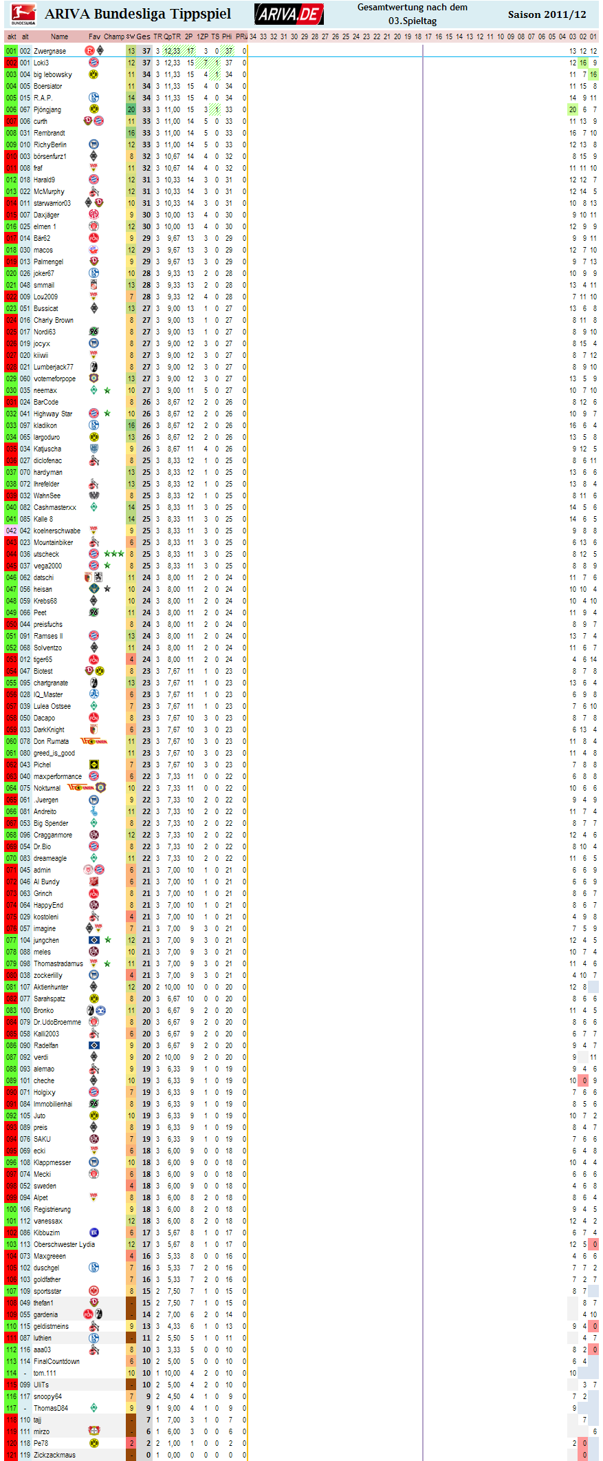in der Gesamtwertung weiterhin zwergnase vorne, nun mit 37 Punkten.. Vorsprung ausgebaut auf 3 Punkte! komplette Gesamtwertung dann nach H96-HBSC...
