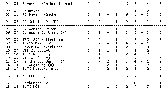 3.Wenn man mit DIESER uneingespielten JUNGEN Mannschaft die ersten beiden Auswärtsspiele beim BVB und beim FCB "abarbeiten" muß, da kann man schon mal evtl. 6 Punkte liegen lassen.