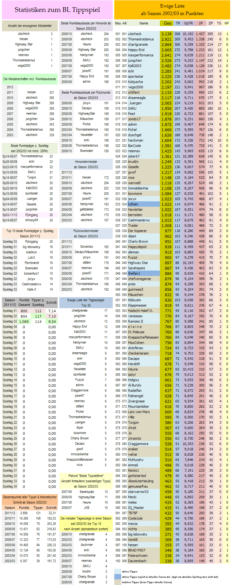 Insgesamt haben 52 Tipper zweistellig gepunktet!! Das hat geschüttelt in der Gesamtwertung.. Doch nun erstmal die Tagessiegerwertung mit dem König des 3.Spieltages - PJÖNGJANG.. *verbeug*