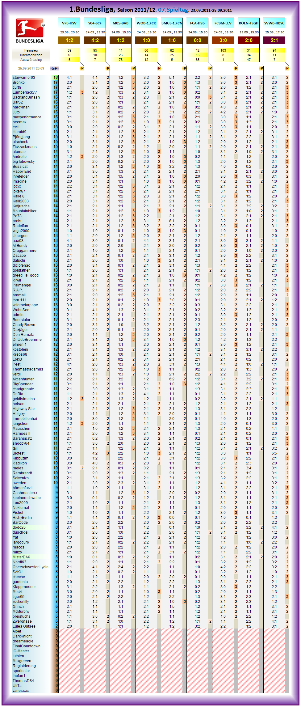 Die Übersicht der Partien des 7.Spieltages der 1.Bundesliga, Saison 2011/12 zum tippen: