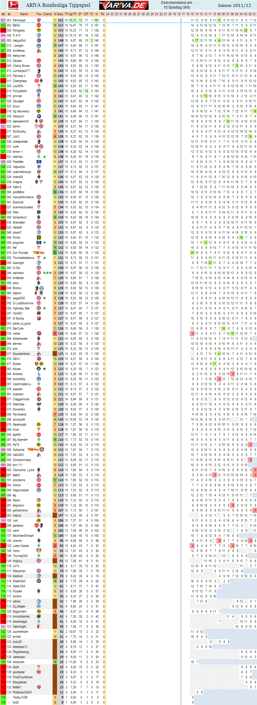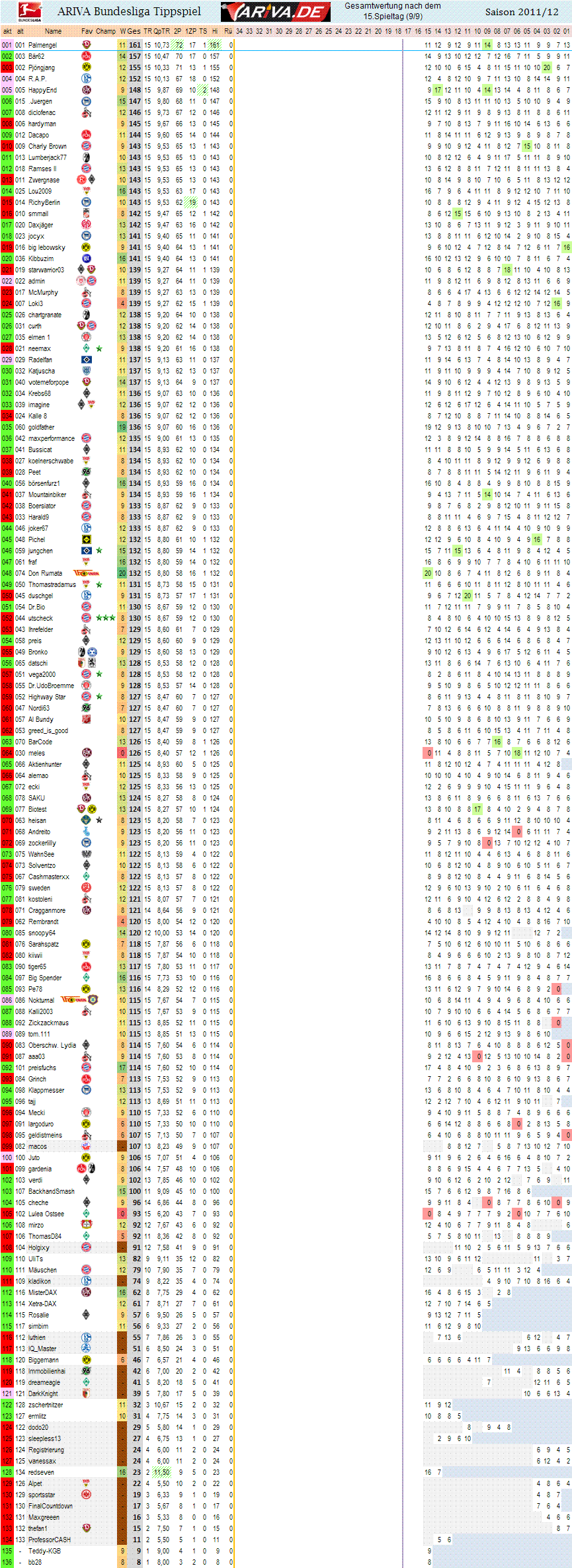 Jetzt stimmt alles. Gesamtpunktzhal, Tendenzen , Spieltag 15 im rechten Teil.. ;o)