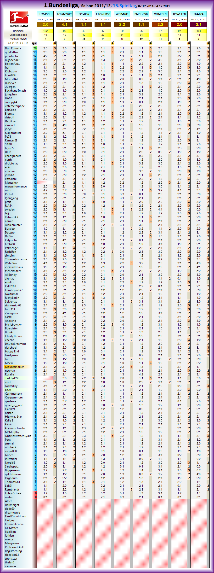 Gespielt wird der Spieltag vom 02.12.2011 20:30 - 04.12.2011 17:30..