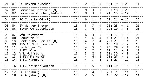 1.Bundesliga, Spieltag 15