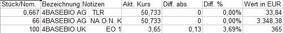 Meine Kenntnis ist, dass die AG (A2YN80) nur noch mit 5.748.154 Aktien auf dem Markt ist. Die Herabsetzung hat meiner Meinung nach am 28.1.2021 stattgefunden. Man kann dies einerseits auf der Firmenwebseite ersehen (https://4basebioag.com/shareholder-structure/) aber auch aus der Pflichtmitteilung (https://4basebioag.com/news/regulatory-news/...le-41-of-the-wphg-3/).