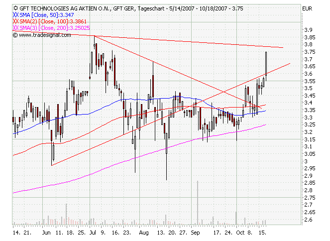 immer negative Zahlen unterstellt, müsste es morgen bei GFT eigentlich sehr gute Zahlen geben, so wie sich die Aktie gegen den doch nervösen Markt, vor allem bei Nebenwerten, gestemmt hat.