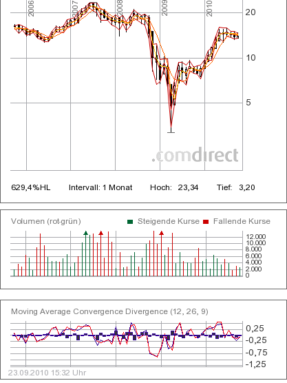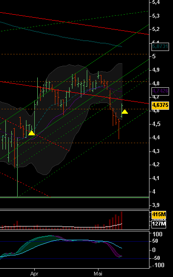 Vom Chartbild her sollte man unter Berücksich­tigung dieser Nachricht eine Bodenbildu­ng erwarten mit jetzt zügigem Anstieg in den Bereich von 6,- €: