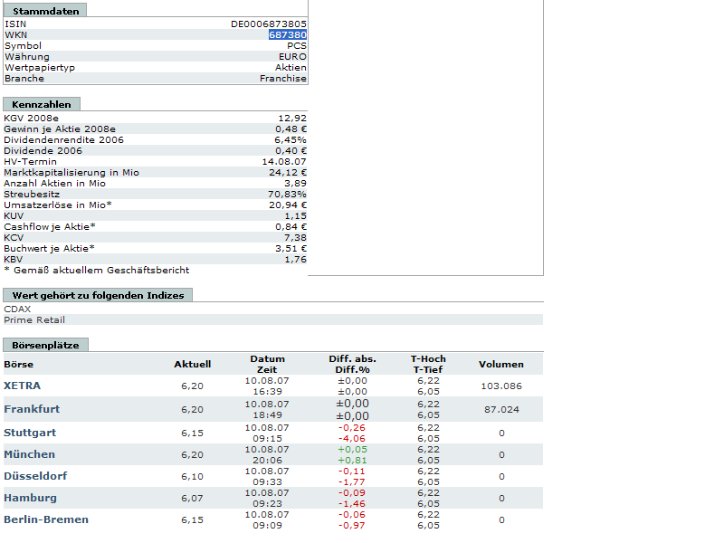 HV-Termin ist am 05.09.07. Dividenden­erwartung:­ 5,7%/Jahr