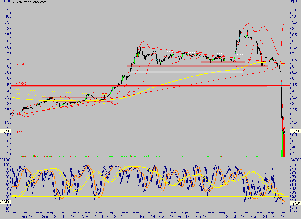 Ganz klar: Das Teil hat Potenzial bis etwa 1,5 bis 2,- Euro, aber bitte: Interessant ist hier nicht die Technik, denn bei solchen Stories kann man die Technik in die Tonne treten - Enron war auch ewig überverkauft, gedreht hat die Aktie dann bei 0,08 $ und nicht schon - wie viele hofften - bei 0,80 $.