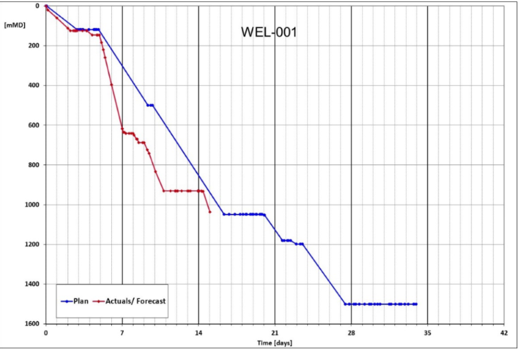 Bis zum 25. Februar um 6.00 Uhr Ortszeit war eine Tiefe von 60 Meter erreicht. Gebohrt wird derzeit ein 17½-Zoll-Loch. Dieses wird sich später mit zunehmender Tiefe im Durchmesser immer weiter verringern. Die Hauptziele der Bohrung liegen in einer Tiefe zwischen 1.100 und 1.800 Meter. Deshalb wird die Gesamtbohrtiefe derzeit zwischen 1.500 und 1.900 Meter erwartet.