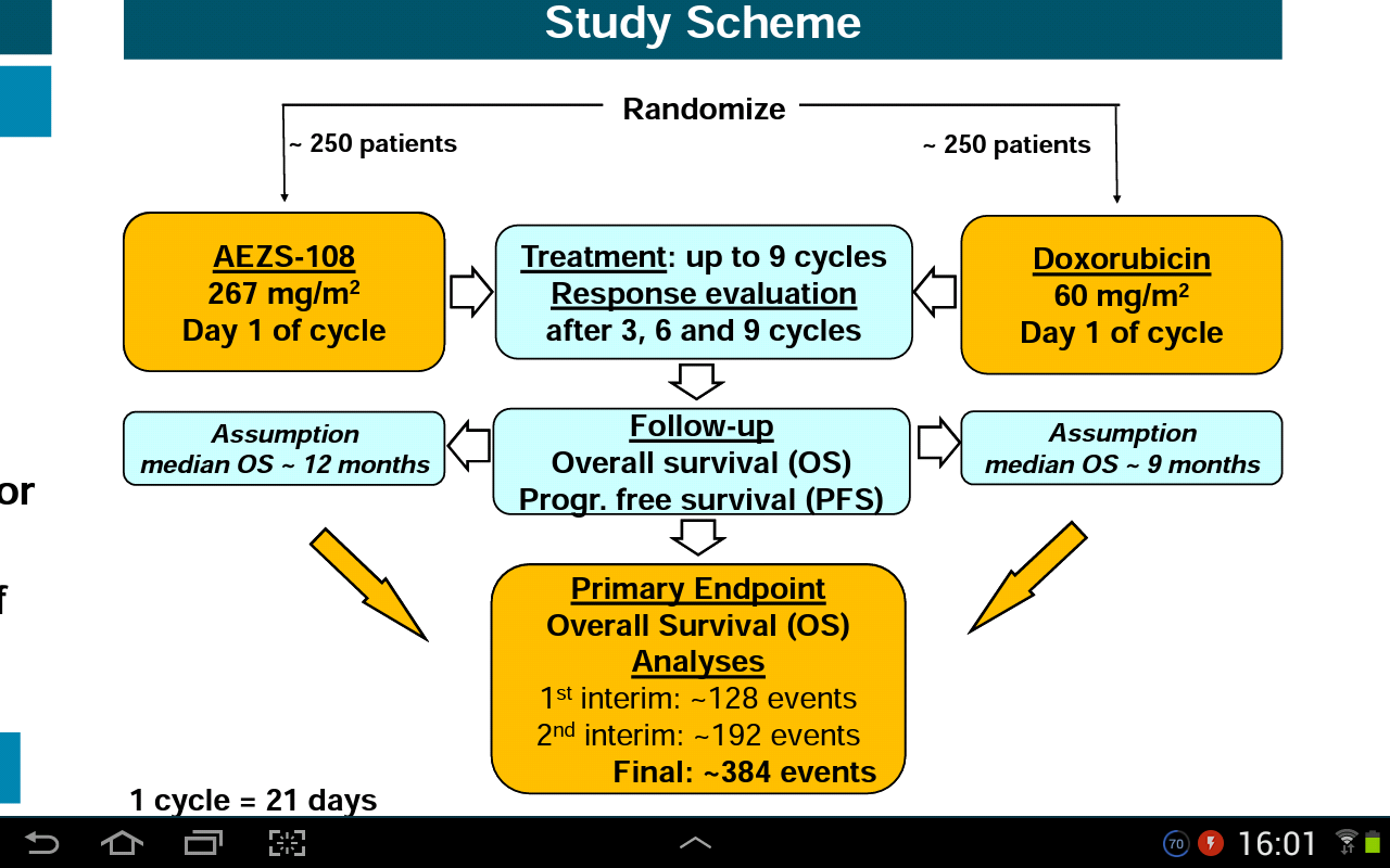 Bei einer Teilstudie an ausgewählten Standorten wird die PK-Profile (Pharmacokinetics) von AEZS-108 und Doxorubicin bei insgesamt 40 Patienten untersuchen.