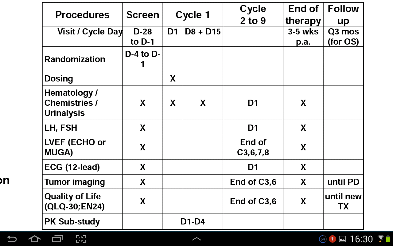 Außerdem eine weitere wichtige Informationen ist, dass die Studie für 3 Jahre geplant wurde. Dabei ging man bei dox von einem Os von 9 Monaten und bei Zoptrex von einem OS von 12 Monaten aus, als man vom Studienzeitraum von 3 Jahr ausging.