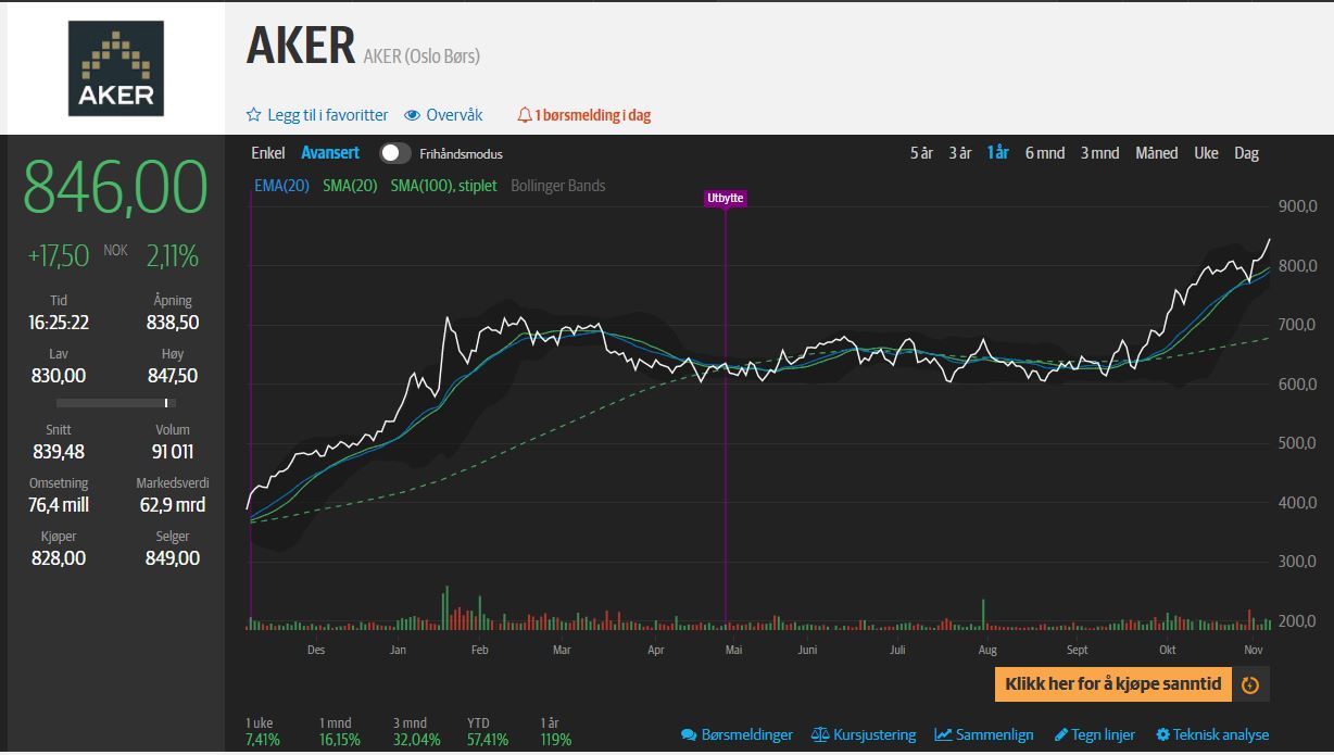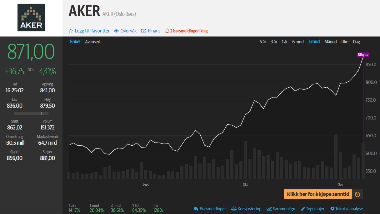 SEB ihrerseits­ erhöht laut PLX ihr Kursziel für Aker von 850 NOK auf 970 NOK.