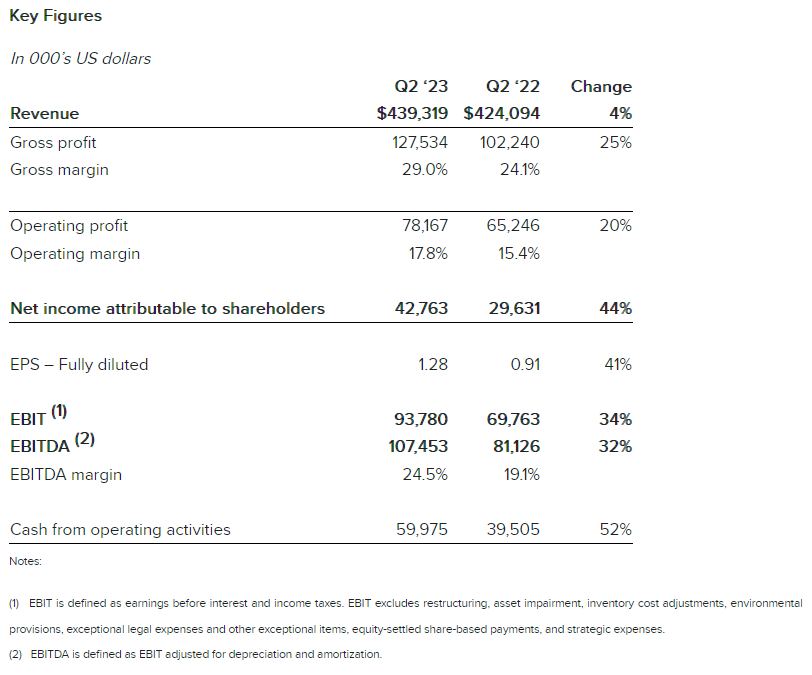 Gegenüber Q2/2022 hat sich der Umsatz nur geringfügi­g erhöht, aber die Marge hat sich deutlich verbessert­ (siehe Screenshot­).