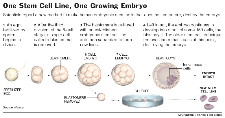 "The big question here is, 'If you were to go and biopsy a blastomere the same way you do in PGD, would that single cell develop into a stem cell line?'" LaBarbera said. "The answer is that has not been demonstrated," he said.