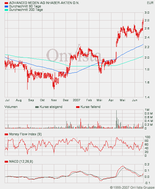 Die Experten von "BetaFaktor" behalten ihre Einschätzung von letzter Woche bei, kein Stück der Advanced Medien-Aktien abzugeben. (Ausgabe 27/07b vom 05.07.2007) (06.07.2007/ac/a/nw)