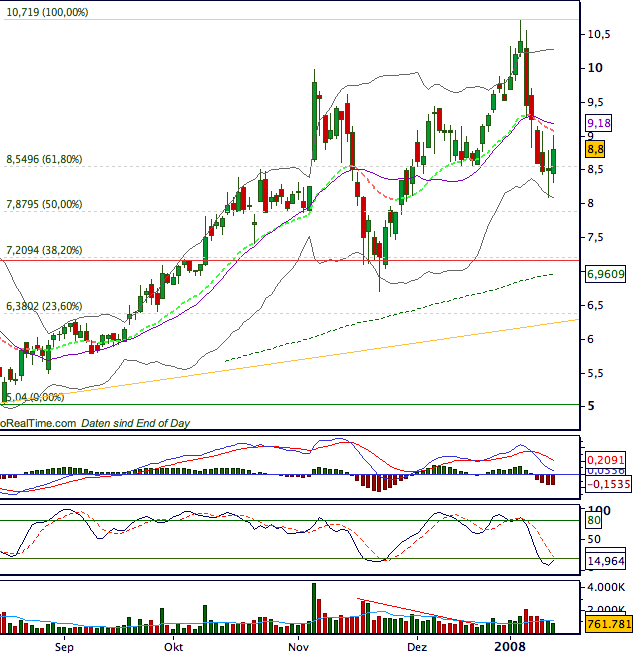 rechne ich fest damit, daß das 50er Retracement bei 7,87noch getestet wird. Auch