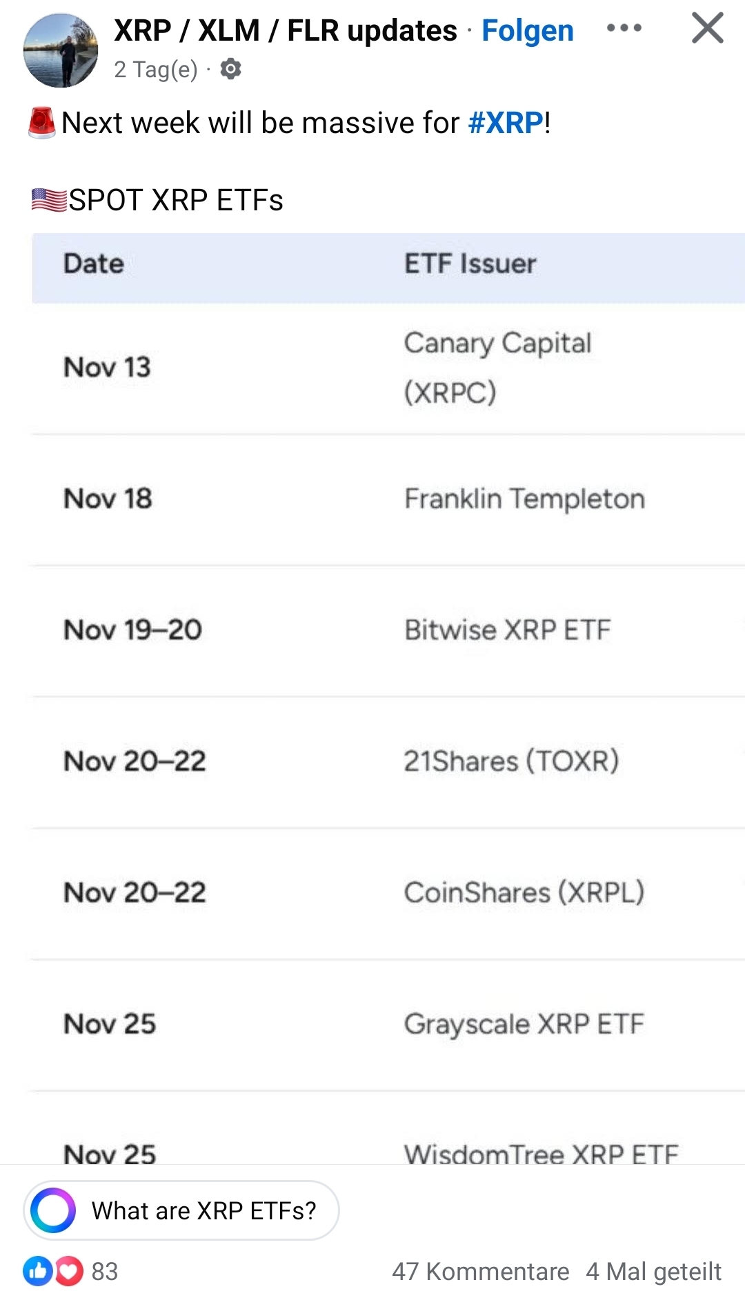 Sechs weitere XRP-ETFs sollen in den kommenden zwölf Tagen folgen.