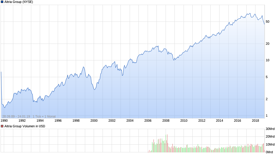 >>>> ....Also im Januar stand Altria bei etwas unter 60€. Jetzt stehen wir bei 40.