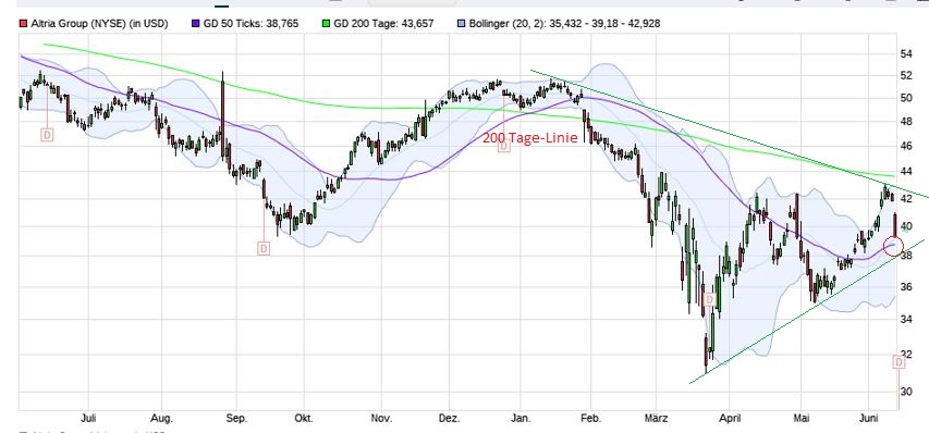 Altria ist 'ne typische Dividendenaktie, von der Du allerdings keine bahnbrechenden Kursanstiege erwarten darfst. Der Chart lässt aber noch etwas Spielraum erkennen.