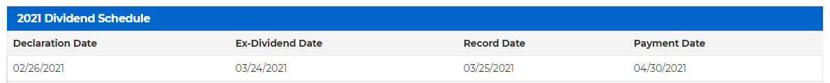 Ex-Tag war der 24.03.2021 und es gibt 0,86 $ pro Aktie. Es wird Valuta Ende April ins Depot gebucht.