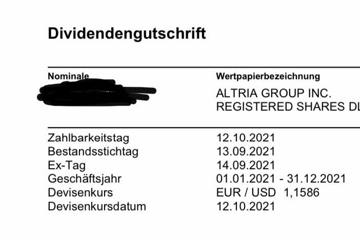 die Dividende gutzuschreiben. Wertstellung 12.10. ist ok, Devisenkurs aber 1,1641 und damit für mich geringfügig schlechter. Dafür durfte ich ja etwas länger warten.....