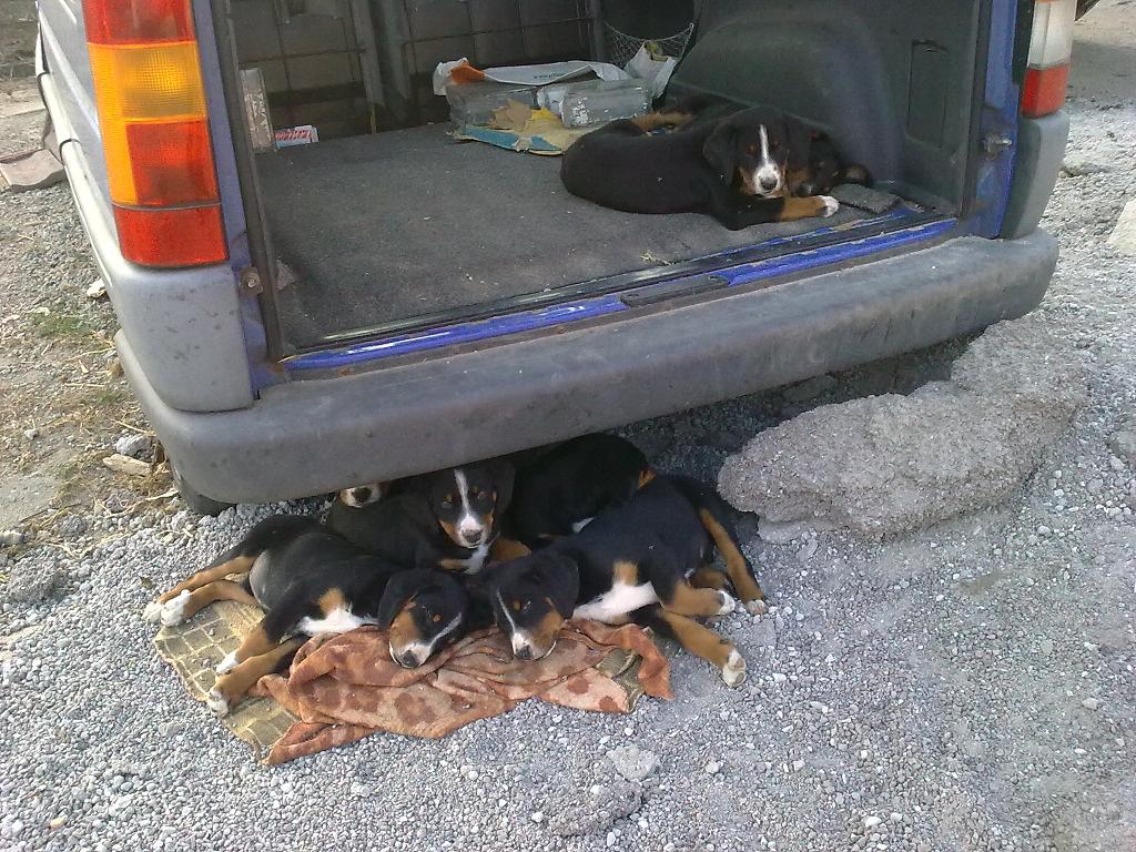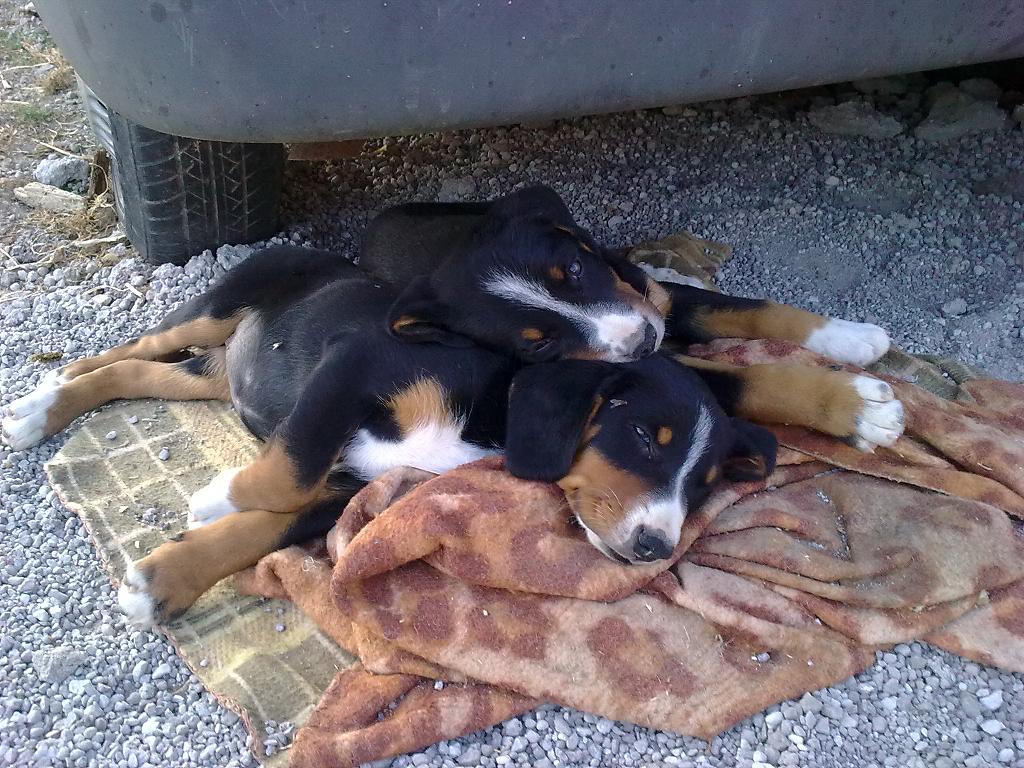 leider was zu dunkel gegen das Licht ... nachdem sie die ganze Zeit "mitgelaufen" sind und man aufpassen muss, wo man hintritt, haben sie sich irgendwann entschlossen, ne Pause zu machen und sich auf den Asphalt fallen lassen *g*
