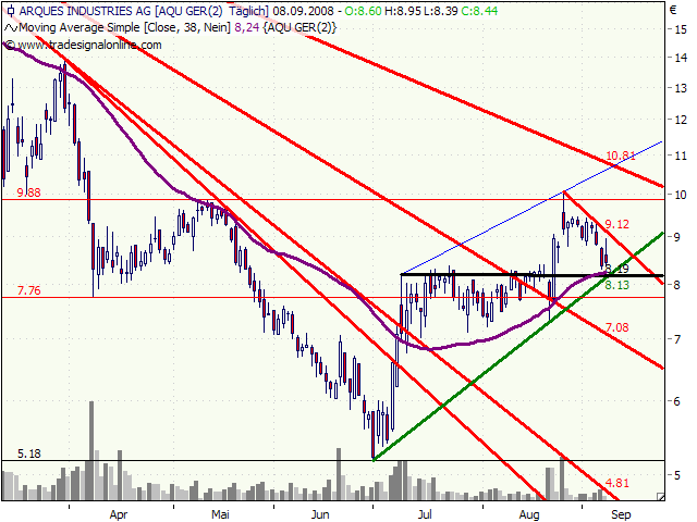 Da Arques sehr marktgebunden ist (weil leider die meisten Anleger denken das in schlechten Zeiten Beteiligungsfirmen schlecht laufen) reagiert die Aktie momentan sehr auf Marktbewegungen.
