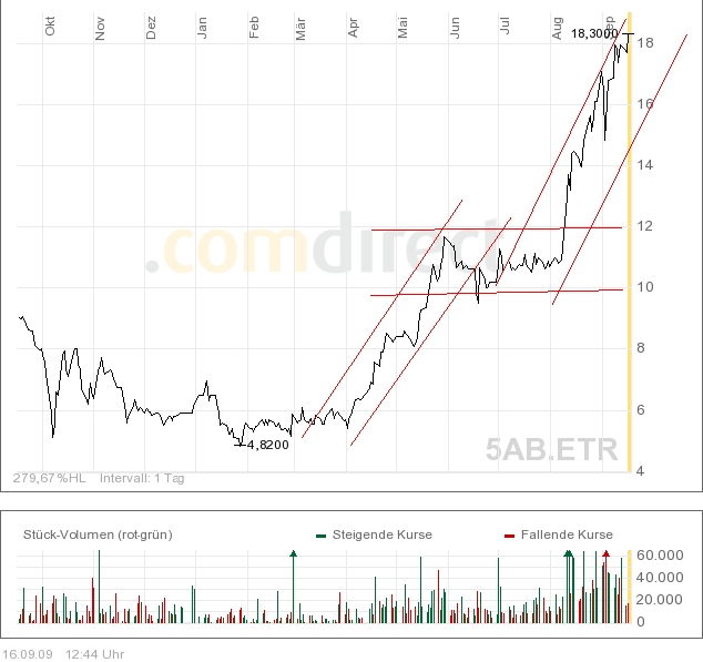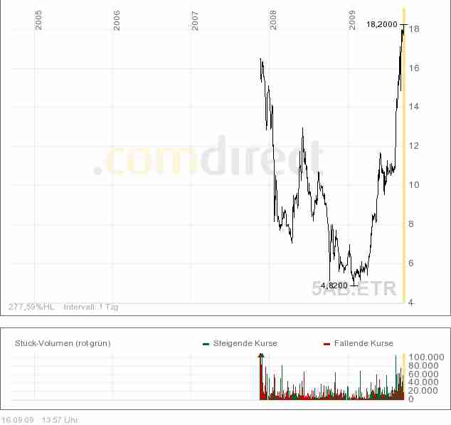 Nach oben sind durchaus 21-22 € in den nächsten 2-3 Wochen möglich, und dann erst eine Seitwärtskonsolidierung. Fundamental gesehen sind ohnehin Kurse über 30 € schon Anfang 2010 realistisch.
