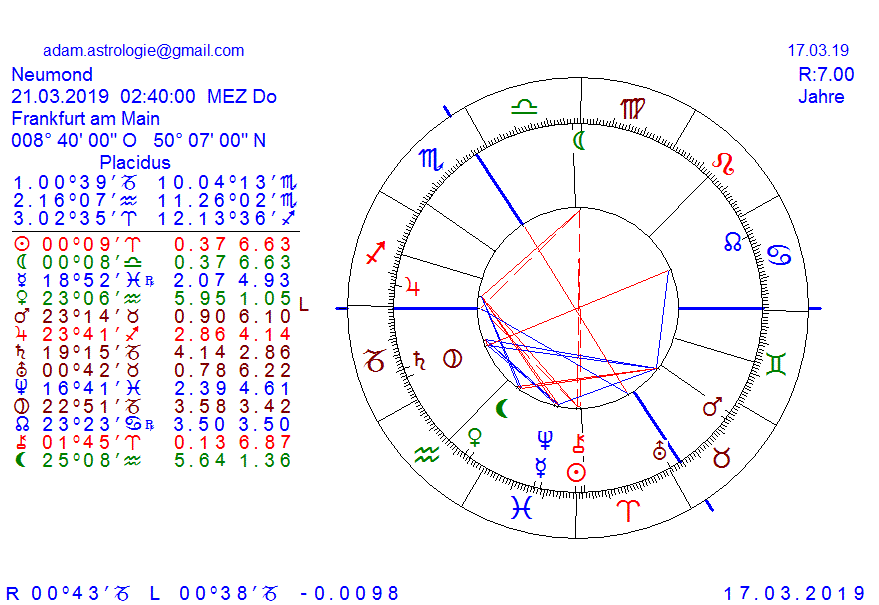 am 21 März ist VM, jedoch die Achse SO opp MO unentspannt, jedoch im Quadr zur Achse ASZ/DSZ alle in kardinalen Zeichen, mit dementsprechender Durchschlagskraft, das natürliche neue Jahr, dem Zeitpunkt in dem die Natur zu neuen Leben befruchtet wird mit Frühlingsbeginn, im Gegensatz zu unseren unnatürlichen Kalender, der eine Matrix ist, mit Beginn im Winter und Ende im Winter, ich denke den Unterschied erkennt man, denn Leben beginnt in der Natur nicht mit SA und dem Winter, sondern mit Sonne und Licht und der Kraft des Frühlings.