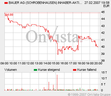 Für den Konzern erwartet Bauer für 2007 eine positive Weiterentwicklung mit einem Anstieg der Gesamtkonzernleistung um gut 20 Prozent auf etwa 1,2 Mrd. Euro und einem Ergebnis nach Steuern von mindestens 45 Mio. Euro.