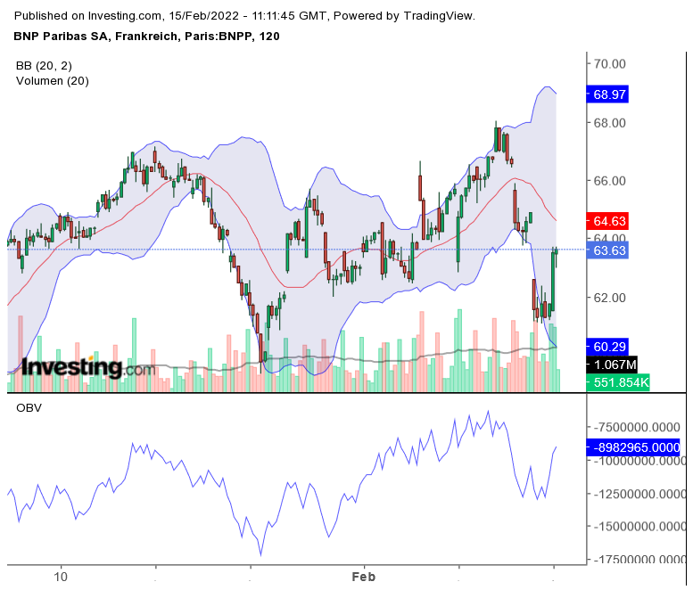 Die BNP zählt mit einem Börsenwert von etwas mehr als 90 Milliarden Euro zu den wertvollsten Banken Europas. Der Kurs zog in diesem Jahr im Einklang mit dem Branchenindex Stoxx 600 Banks um 35 Prozent an.