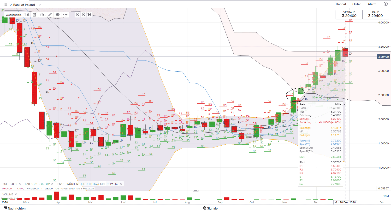 Ja, die Bude ist ordentlich gestiegen in der jüngeren Vergangenheit, jedoch muss man aber auch Bedenken dass BOI mit dem ganzen Corona-Wahnsinn mal eben um 75%+ abgeschmiert ist! Von dem Abstieg kratzen wir nun gerade einmal am 61,8% Retracement. Wenn wir dieses überwinden (liegt bei ca 3,90€) könnte es schnell in Richtung 4,50€-5,00€ gehen.