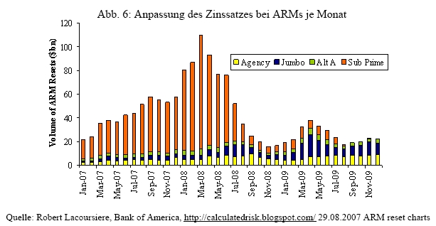 Die Abbildung zeigt, in welchem Monat wie viele ARM`s (Hypotheken mit veränderlichem Zinssatz) ihren Status wechseln werden.