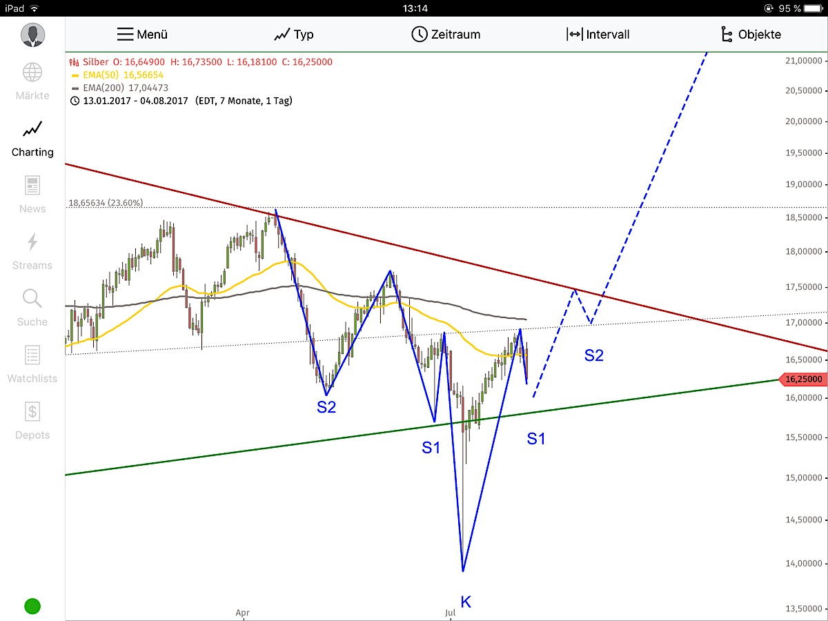Auch wenn es nun dazu kommt, dass der Kurs nachgibt, wird der Kurs spaetestens an der unteren Schenkellinie wieder drehen. Ab dann geht die Luzi ab;-)) Davon bin ich ueberzeugt!!