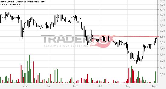 ... ist mit 52,39 % mehrheitsaktionär der Highlight Communications und charttechnisch in ähnlicher verfassung, schreibt aber noch verluste***