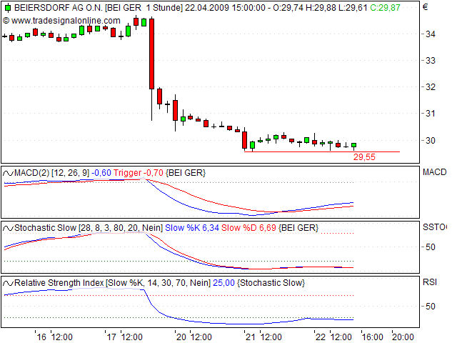 es bedarf heute zumindest einen schlusskurs signifikant über 29,42 damit sich der kurs wieder fangen kann.