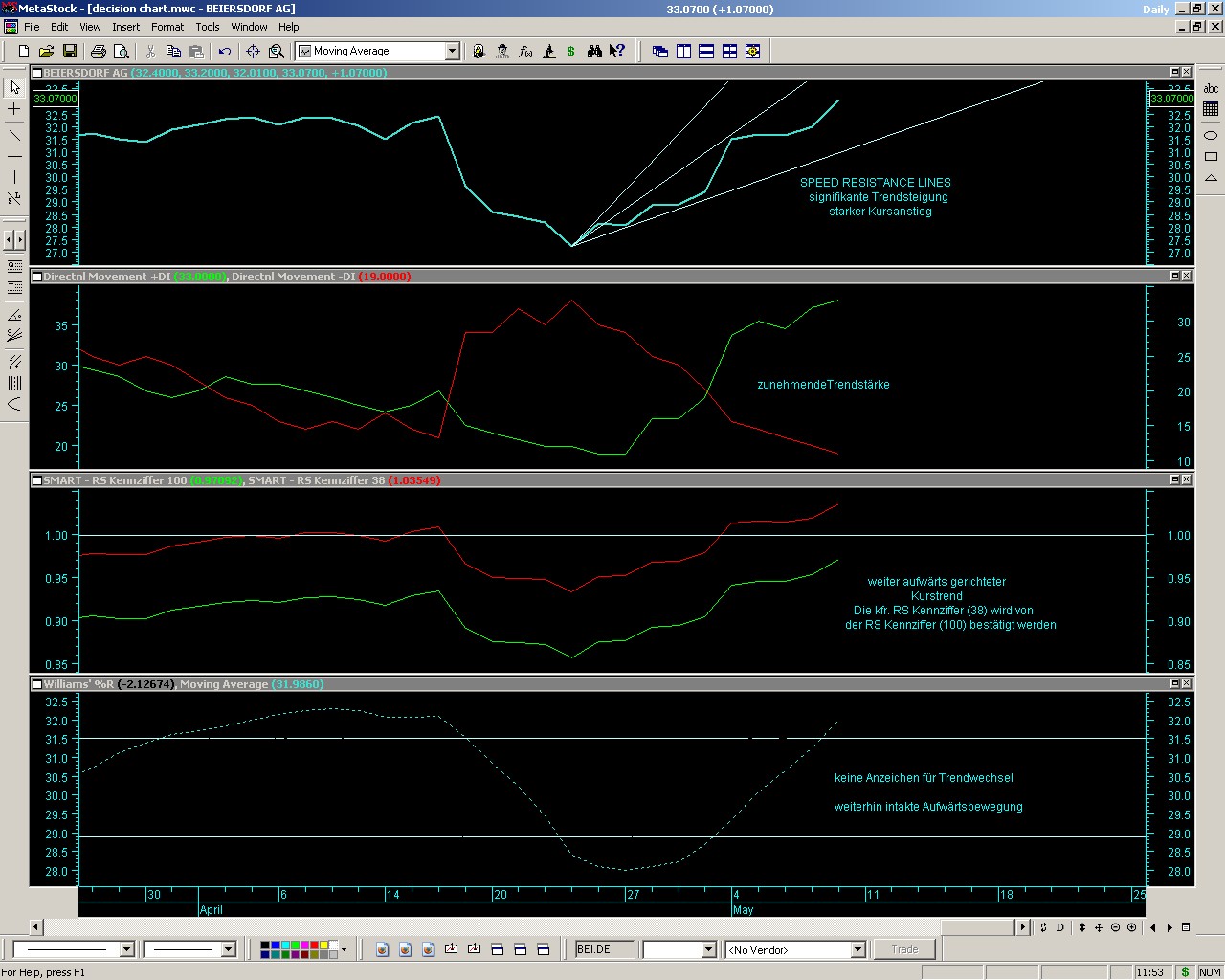 Die Analysten-Empfehlung bestätigt das, was seit dem 23.04. als Tiefstpunkt zu konstatieren war und seitdem mit starkem Kursauftrieb verlassen wird. Seit Ende April signalisieren alle maßgeblichen Indikatoren eine Fortsetzung der Aufwärtsbewegung. Die Analysten-Empfehlung der SEB wird die Kursbewegung vermutlich nochmals günstig beeinflussen.