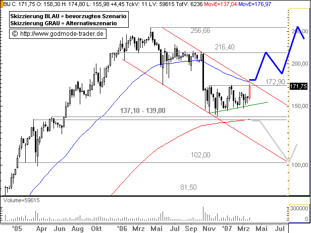 Ausserdem nehme ich meine Prognose zur HV noch weiter zurück und sehe Höchstkurse für 2007 bei max. 150,00 €