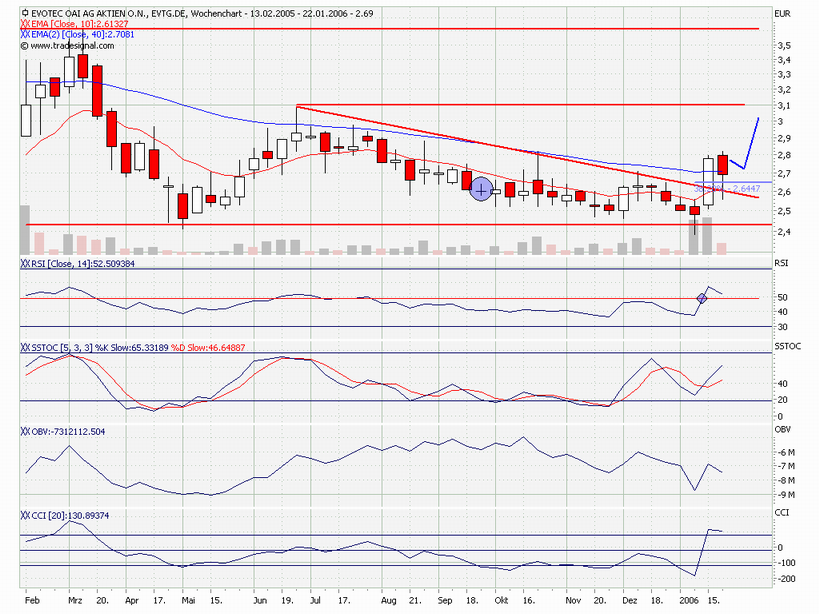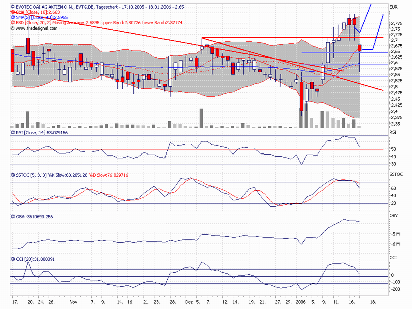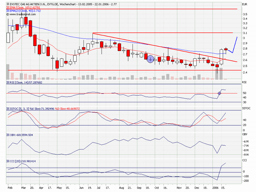 nicht vergessen! evotec kam vor 3 wochen von unter 2,40 und stieg kurz auf über 2,80. volumen ist diese und letzte woche geringer. den rücksetzer interpretiere ich als kurze verschnaufpause, 50er retracement im wochenchart (2,59). bald sollten auf diesem niveau wieder verstärkt käufe einsetzen!