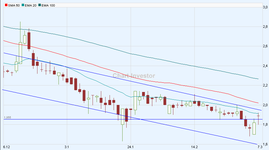 Zunächst fiel die Aktie auch auf 1,63 Euro ab, stabilisiert sich jedoch in den letzten Wochen. In der letzten Woche zeigte sich knapp oberhalb der Marke bei 1,63 Euro, die jetzt als kleine Unterstützung wirkt, leichtes Kaufinteresse. Diese Käufe finden aber bisher in dieser Woche keinen Anschluß. Es kommt also nicht zu weiteren Käufen. Selbst eine heutige Unternehmensmeldung