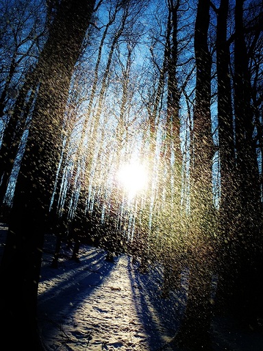 - Also Gegenlicht, schneebeladener Baum