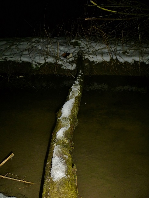 Teichgrund fixiert. Leider trug das Eis nicht mehr, so