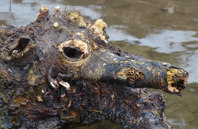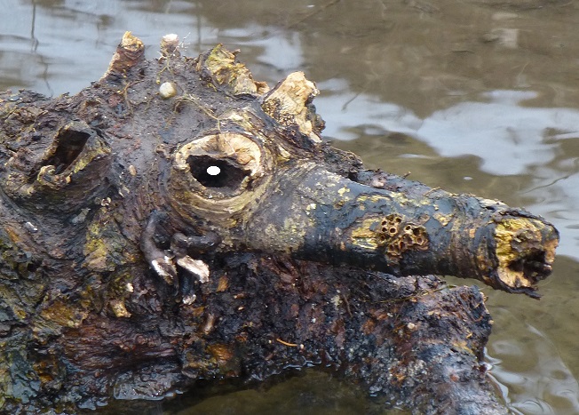 lochscheckiger Korkkaiman, wie er in Deutschland in fast jedem Waldgewässer vorkommt. Allerdings sind sie durch Übergriffe von Bibern mittlerweile bedroht, wie ich gehört habe.