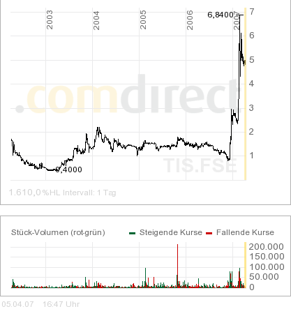 wenn man mal überlegt, was eine "tiscon" für prozente gemacht hatte, nur weil lediglich der börsenmantel glaube ich übernommen wurde (ca.7,5mio aktien outstanding), was für ein potenzial hat denn eine "cdv software" mit 1,6mio aktien outstanding und einer wandelsanleihe ...Ausgabepreis von je 10,00 Euro!