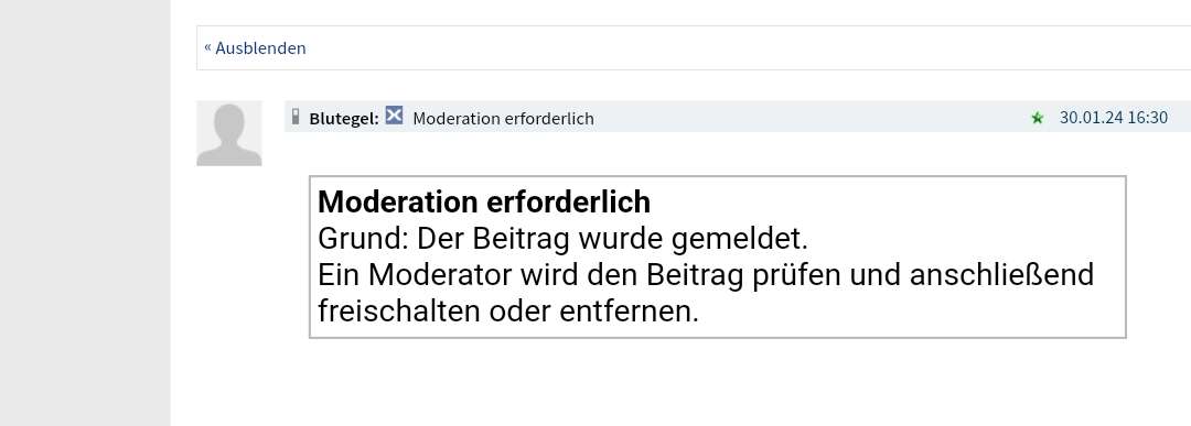 ...warum wurde der Beitrag von Blutegel gemeldet?? wo liegt das Problem bzw. wer hat ein Problem mit diesem Beitrag??