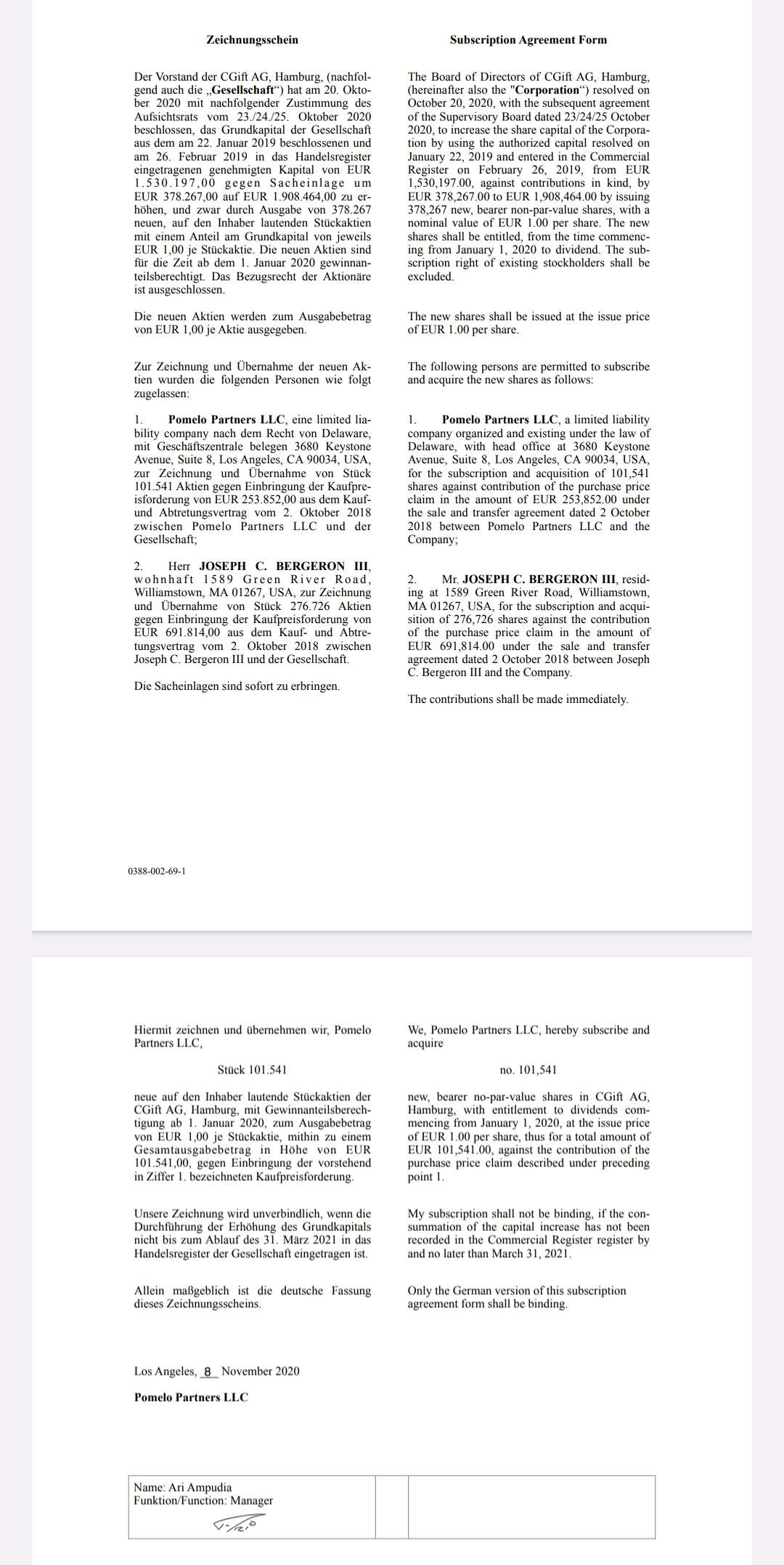 ... und der Firma Pomelo Partners LLC