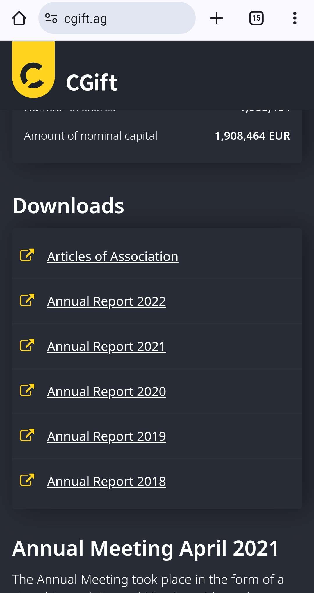 Jahresabschlüsse auf www.cgift.ag verfügbar!