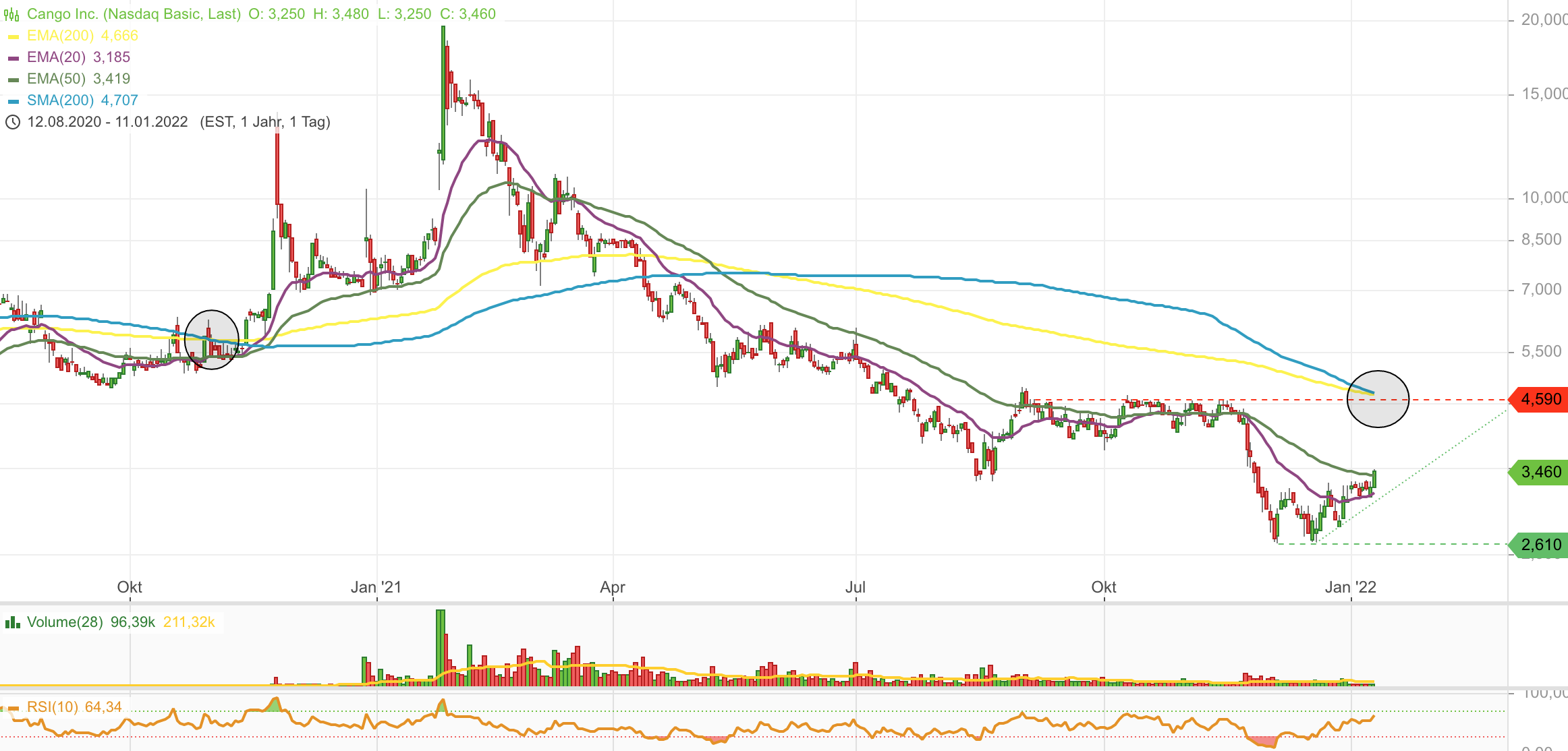 seit geraumer Zeit wieder relativ konstruktiv vom Chartbild aus. Higher Highs, lower Lows. Auch SMA200/EMA200 Schnitt ist kein schelchter Indikator wie der Blick in den Rückspiegel zeigt. Ich werde mich aber hütem bei diesem Wert auf vermeintliche Gesetzmässigkeiten zu vertrauen.
