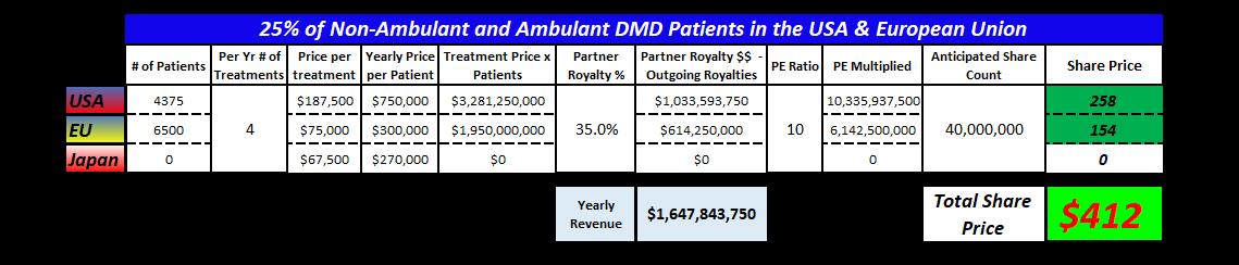 Wenn man diese Pateienten alle mit Deramiocel von Capricor behandeln würde - und eine Behandlung kostet mehrere tausend Dollar, dann kann man sich in Etwa das Potential errechnen. Kommt dann noch einer Zulassung in Europa dazu, hier gibt es noch mehr Patienten, dann wird es echt interessant.