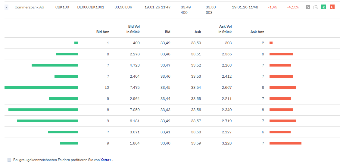 bei unserer Coba, mein gewünschter Zukaufkurs von € 33,50 wurde mal wieder bedient. Die Coba bringt nicht nur ständig schönen Gewinne, zumindest wenn man bereit ist rechtzeitig dies auch zu realisieren, sondern verfügt über einen großen Spaßfaktor.